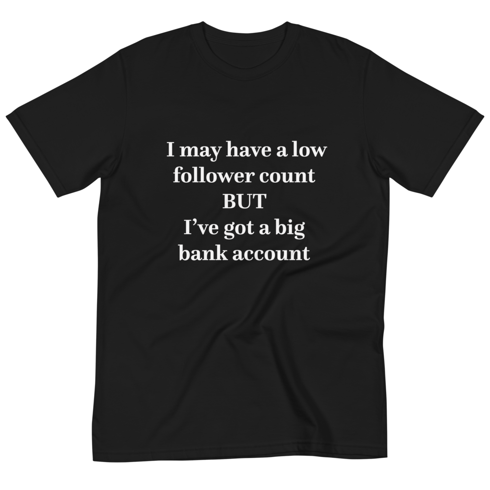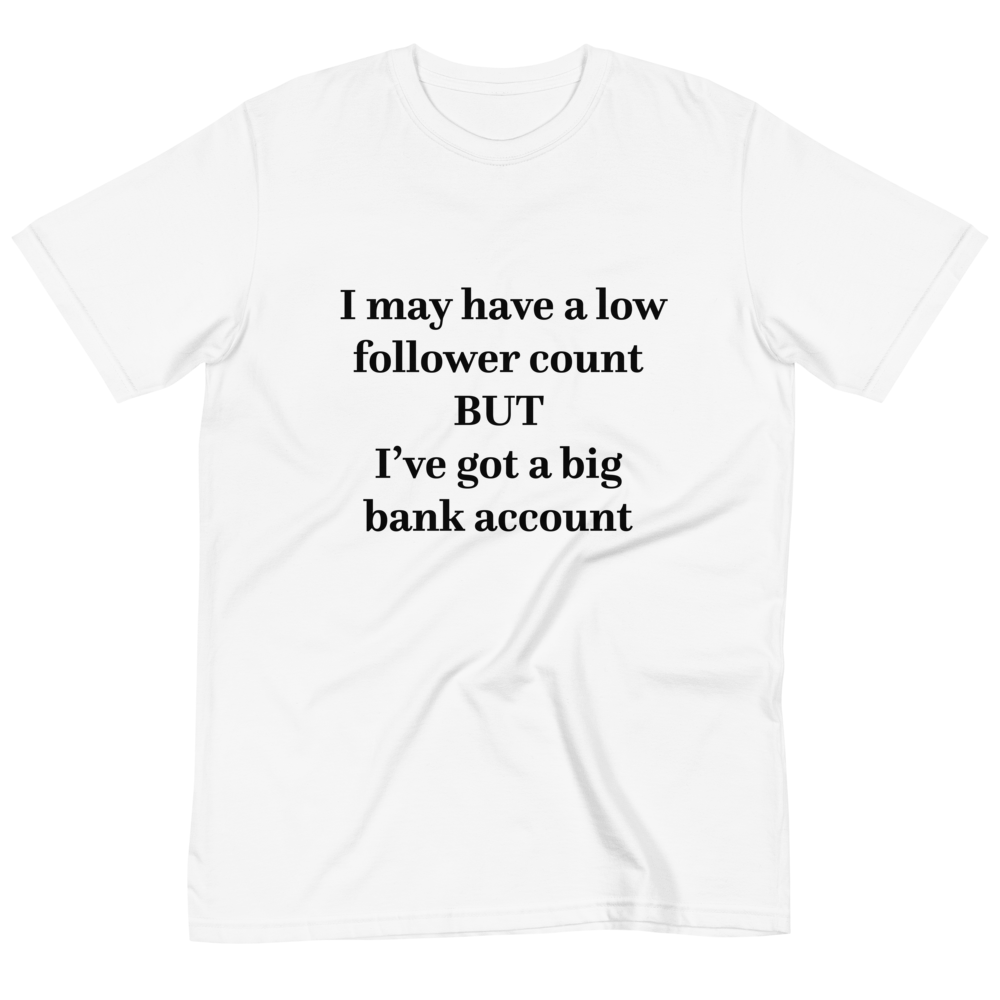 Pennies & Pens Low Follower Count, Big Bank Account Unisex T-Shirt is made of 100% Organic Cotton, certified by GOTS.
